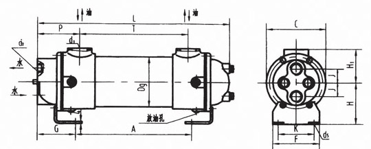 | 型號 | 換熱 面積m2 | Dg | C | L | T | P | H1 | G | A | H | F | K | d5 | d2 | d1 | J | 重量 (kg) |